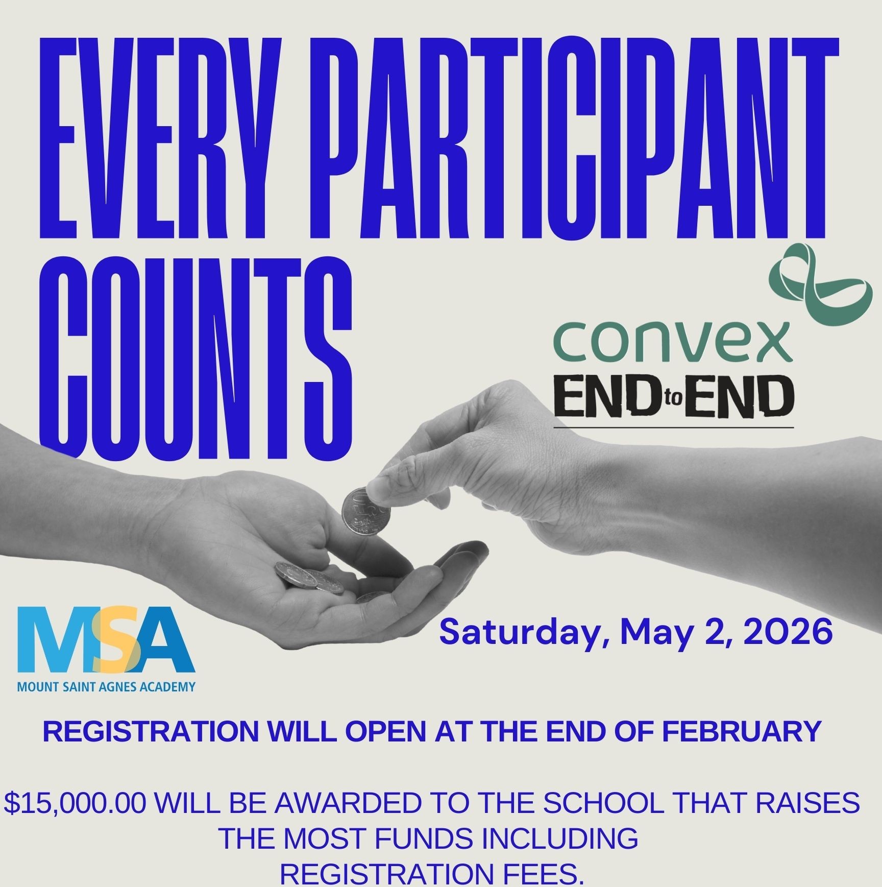 MSA once again will be part of the End-to-End Event. If you are thinking of participating, make sure to check the box for the Mount Saint Agnes team when you register. Registration is due to come out at the end of February. The school team that raises the most money wins $15,000.00!
